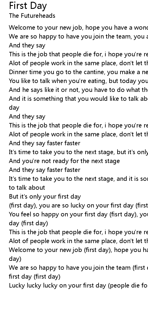Welcome to your new job (first day), hope you have a wonderful first day (first day) |