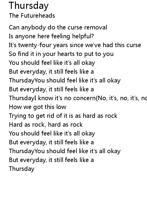 ThursdayYou should feel like it's all okay |