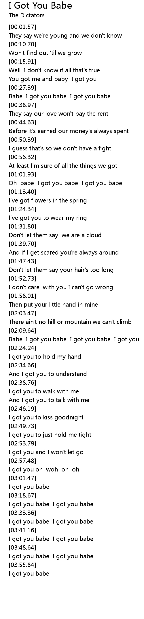 Babe I got you babe I got you babe I got you |