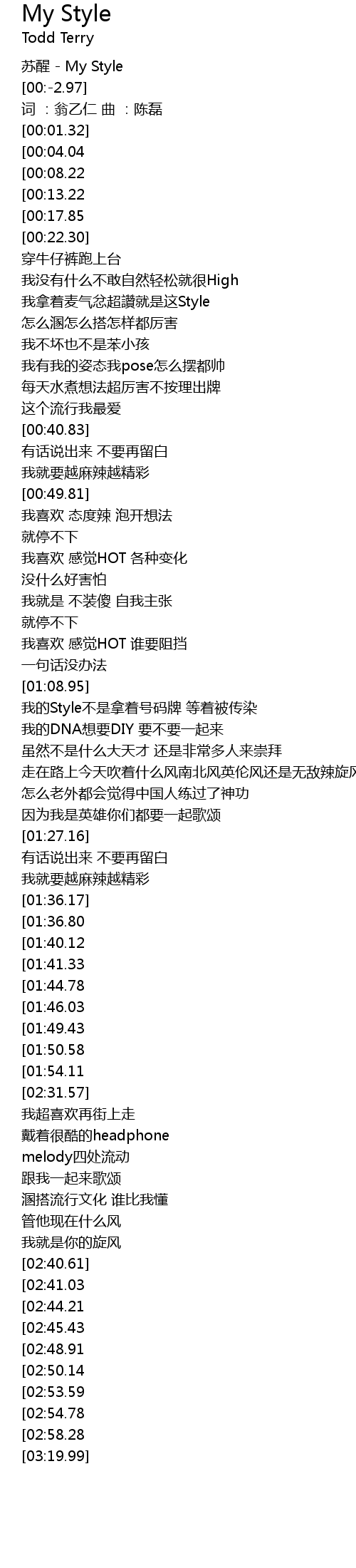 | [02:22.86][00:13.22] | Style my style |