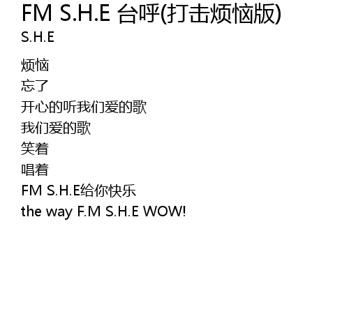 | Song | FM S.H.E 台呼(打击烦恼版) |