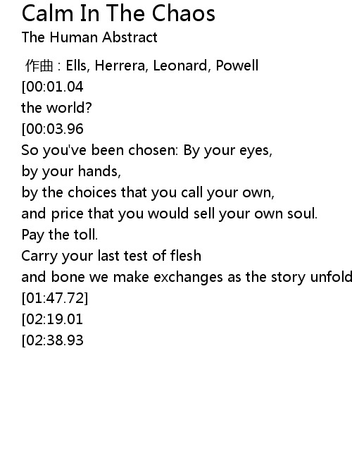 | Song | Calm In The Chaos |