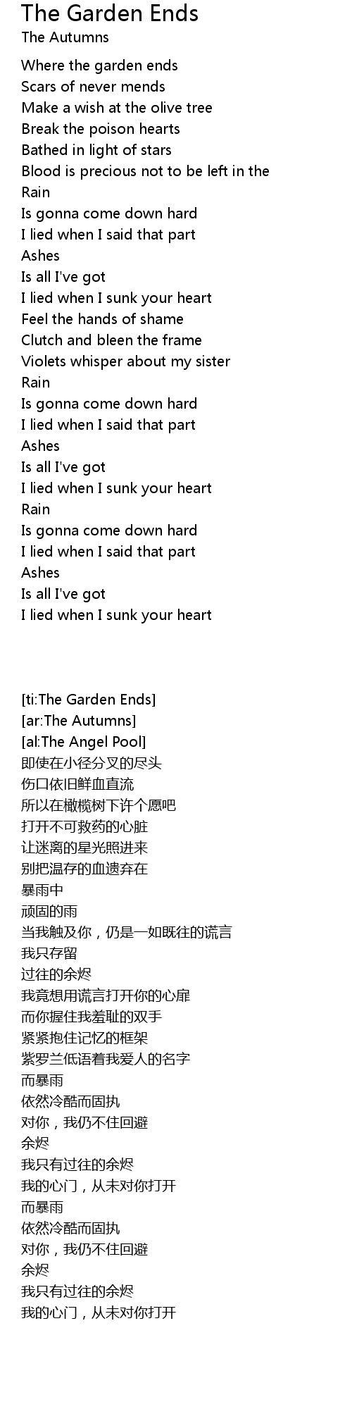 The Garden Ends Lyrics