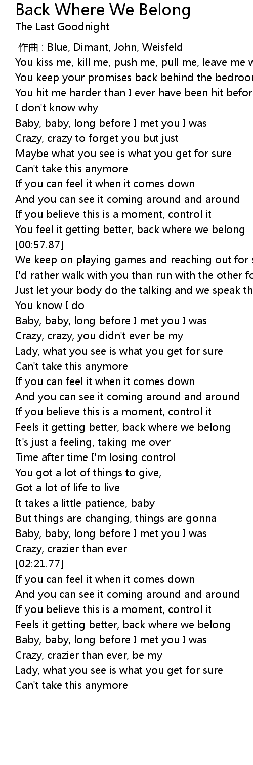 | [00:09.60] | You kiss me, kill me, push me, pull me, leave me wanting more |
