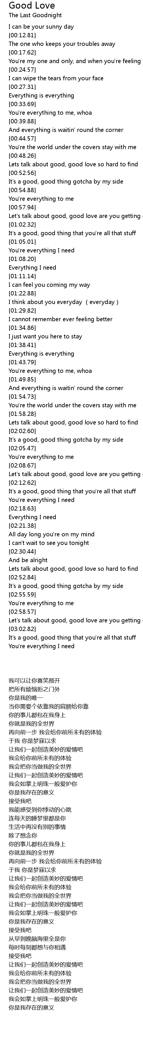 | [02:00.17] | Lets talk about good, good love so hard to find |