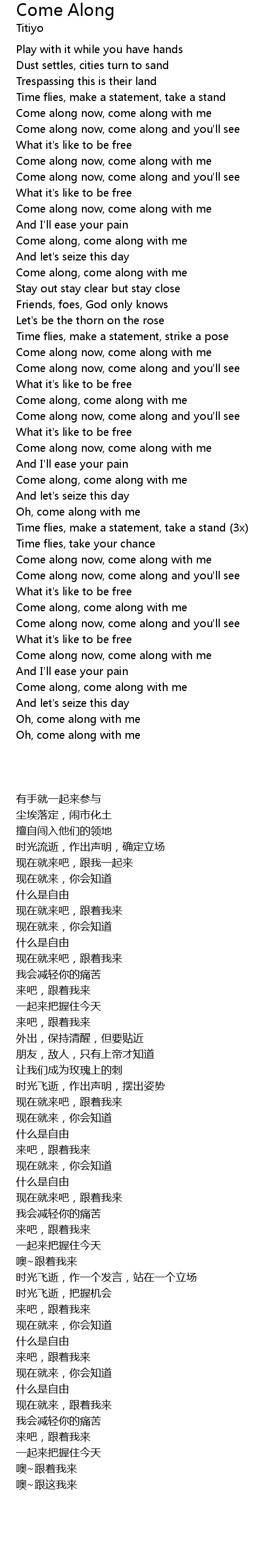 | [00:52.360] | Come along now, come along with me |