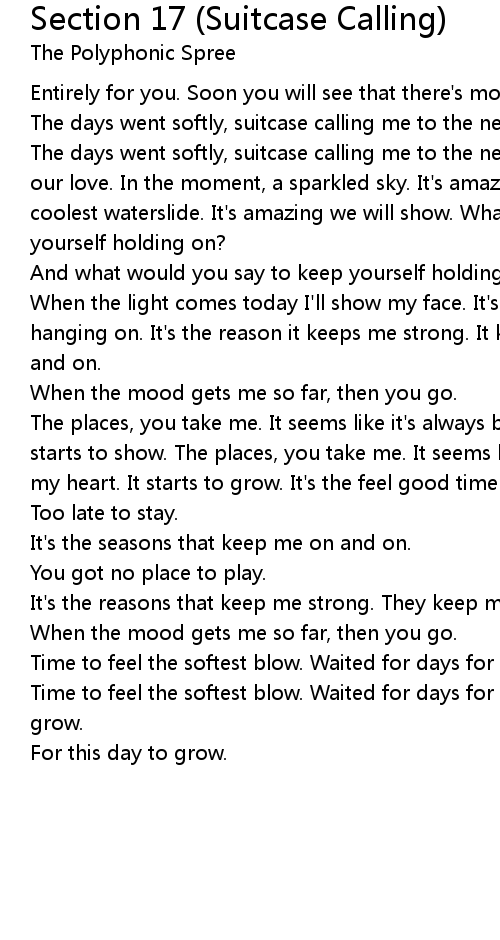 The days went softly, suitcase calling me to the needs of our fond memories of our love. In the moment, a sparkled sky. It's amazing we all know. It's the coolest waterslide. It's amazing we will show. What would you do to keep yourself holding on? |