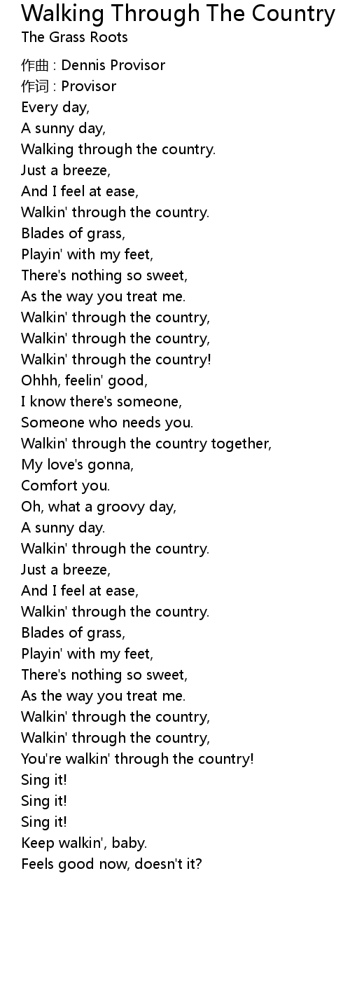 | Walkin' through the country, | |