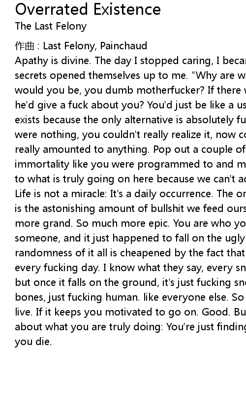 | Song | Overrated Existence |