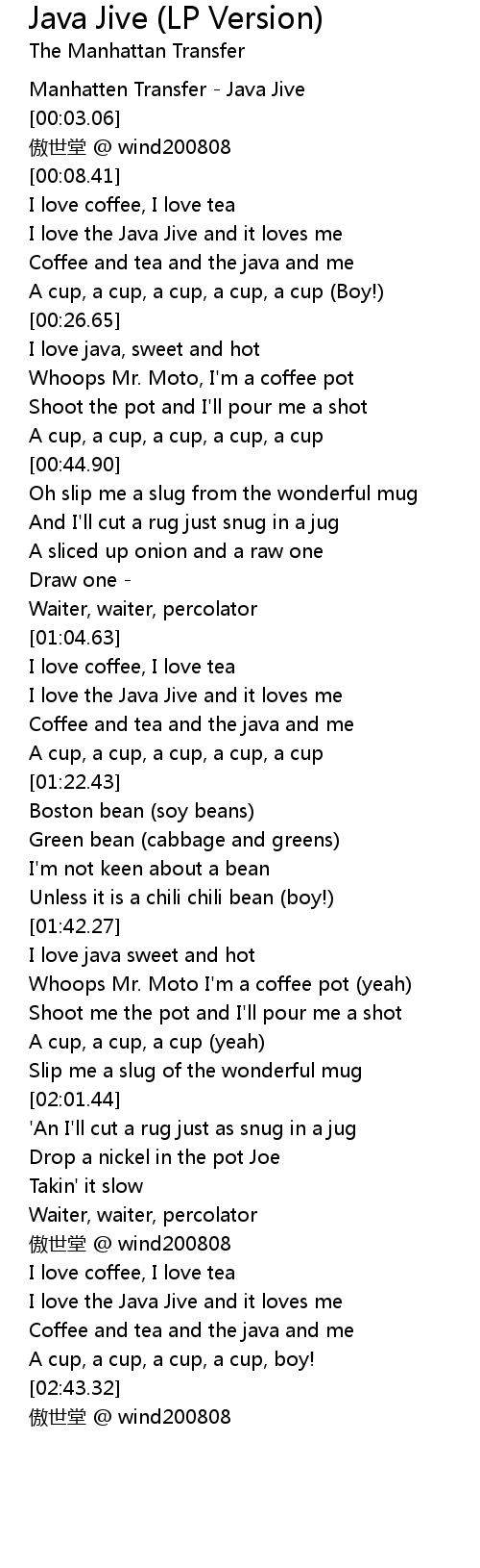 | [00:00.06] | Manhatten Transfer - Java Jive |