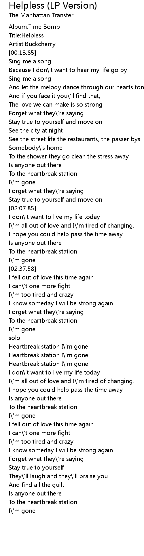 [03:48.77] I\'m all out of love and I\'m tired of changing.