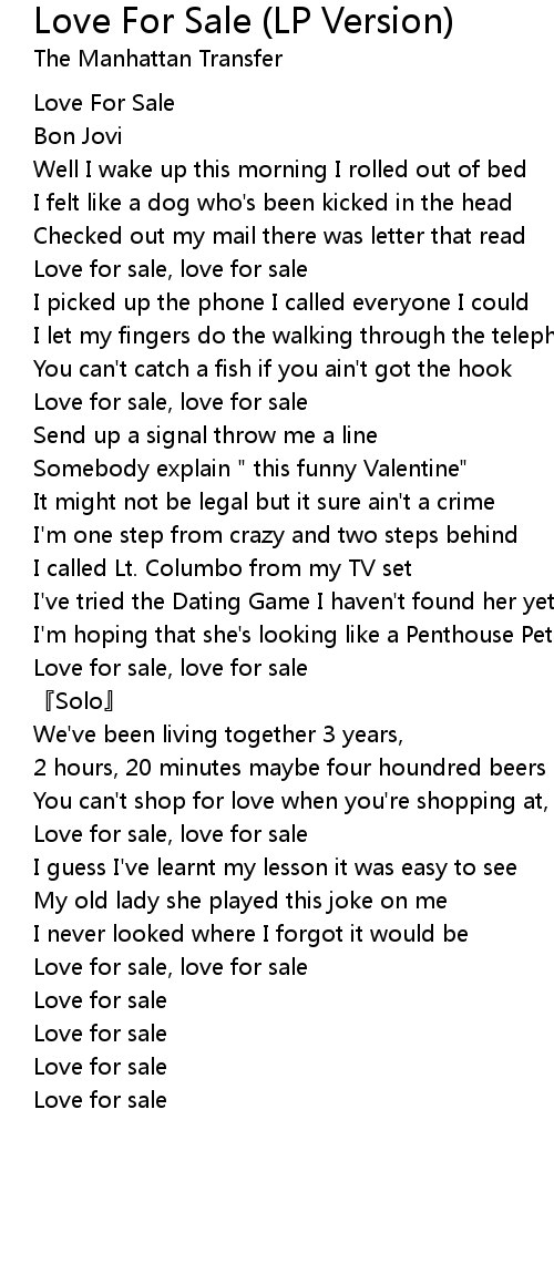 | Love for sale, love for sale | |