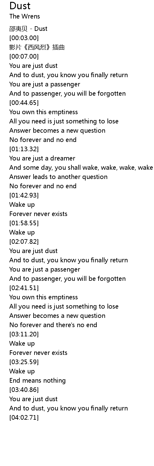 | [00:16.63] | You are just dust |