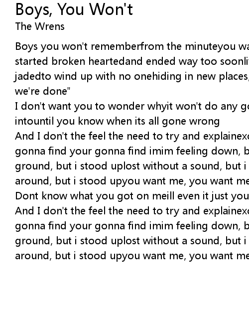 Boys you won't rememberfrom the minuteyou walked into the roomevery letter started broken heartedand ended way too soonlived through underratedgetting jadedto wind up with no onehiding in new places, getting wastedsinging "I guess we're done"