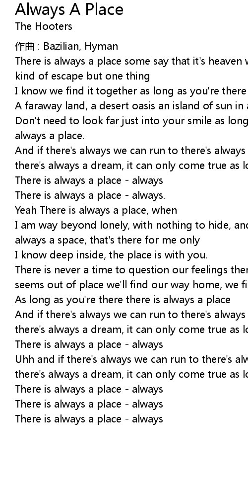 | There is always a place some say that it's heaven where someday we'll find some kind of escape but one thing | |
