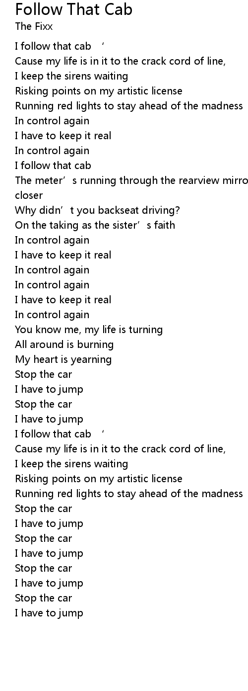 | The meter' s running through the rearview mirror and the future' s getting closer | |
