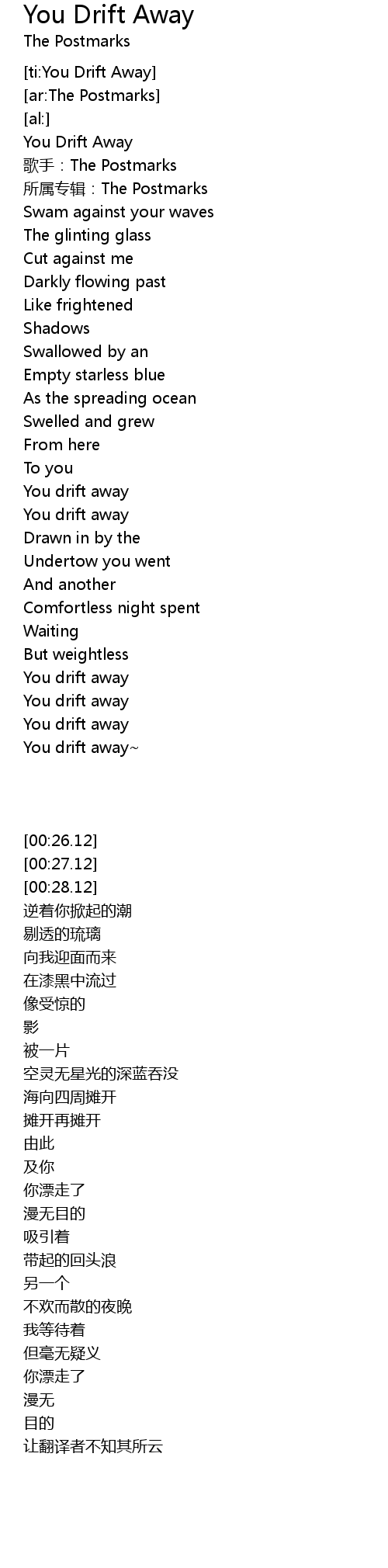 | [00:28.12] | suǒ shǔ zhuān jí: The Postmarks |