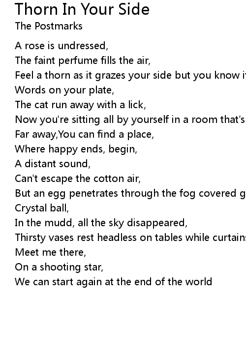 Feel a thorn as it grazes your side but you know it's not the end of the world, |
