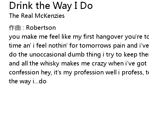 | you make me feel like my first hangover you' re touchin' me like the very worst time an' i feel nothin' for tomorrows pain and i' ve learned my lesson.... again i do the unoccasional dumb thing i try to keep them many and not so far between and all the whisky makes me crazy when i' ve got nothin' better: to do it' s my confession hey, it' s my profession well i profess, to all the rest that i drink the way i... do |