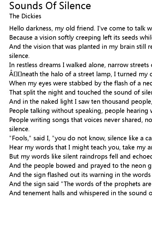 | People writing songs that voices never shared, no one dared disturb the sound of silence. | |