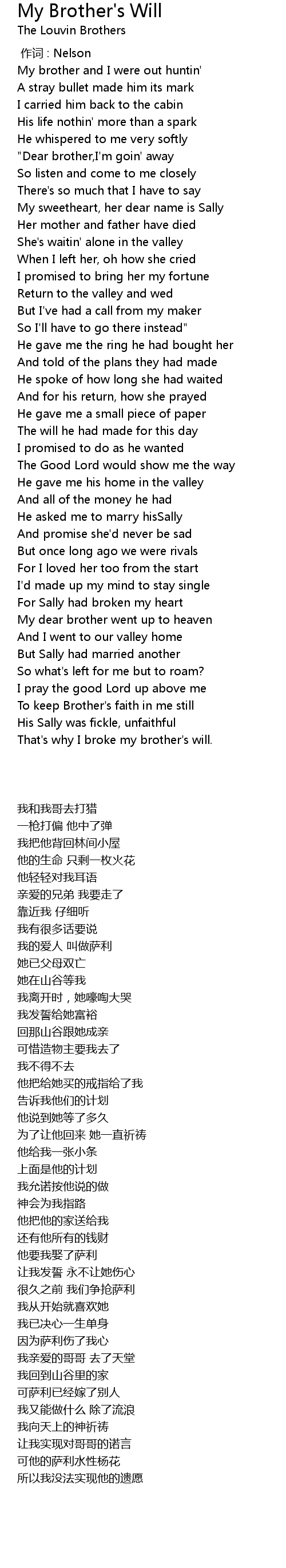 | [03:06.20] | That' s why I broke my brother' s will. |