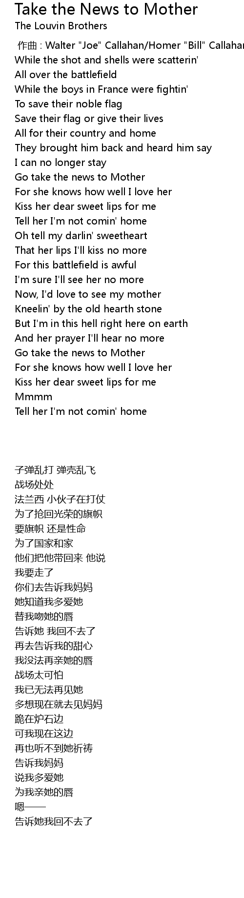| [00:00.00] | zuo qu : Walter " Joe" Callahan Homer " Bill" Callahan |