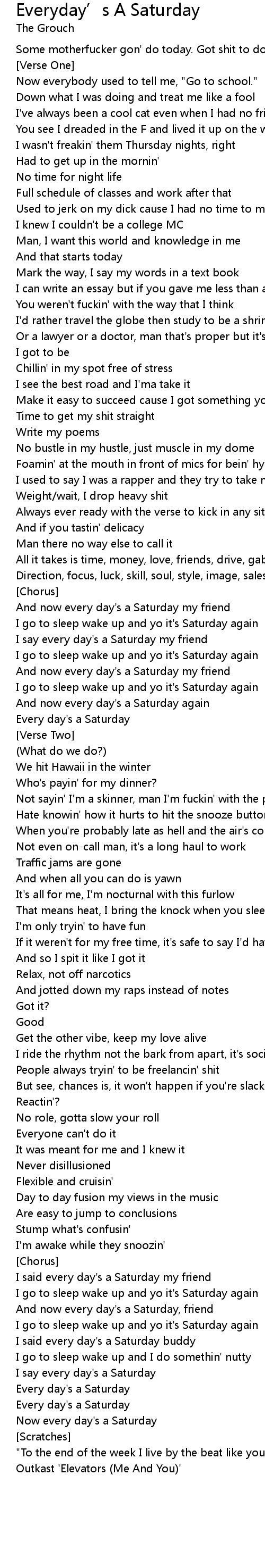 "To the end of the week I live by the beat like you live check to check" - Outkast 'Elevators (Me And You)' |