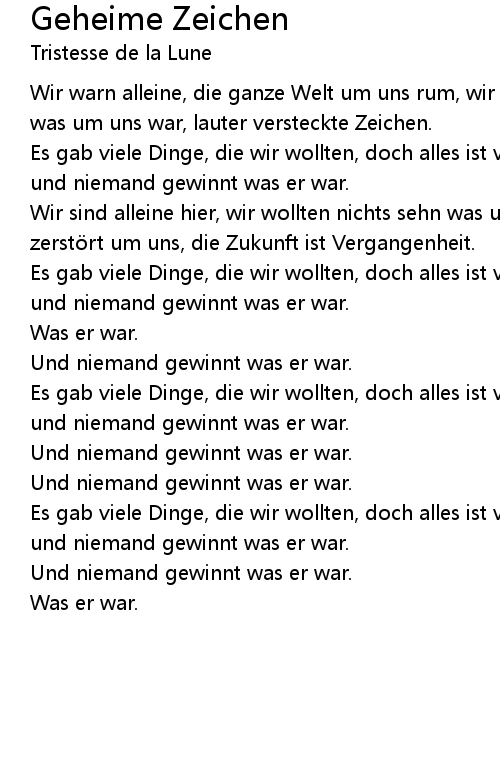 | Song | Geheime Zeichen |