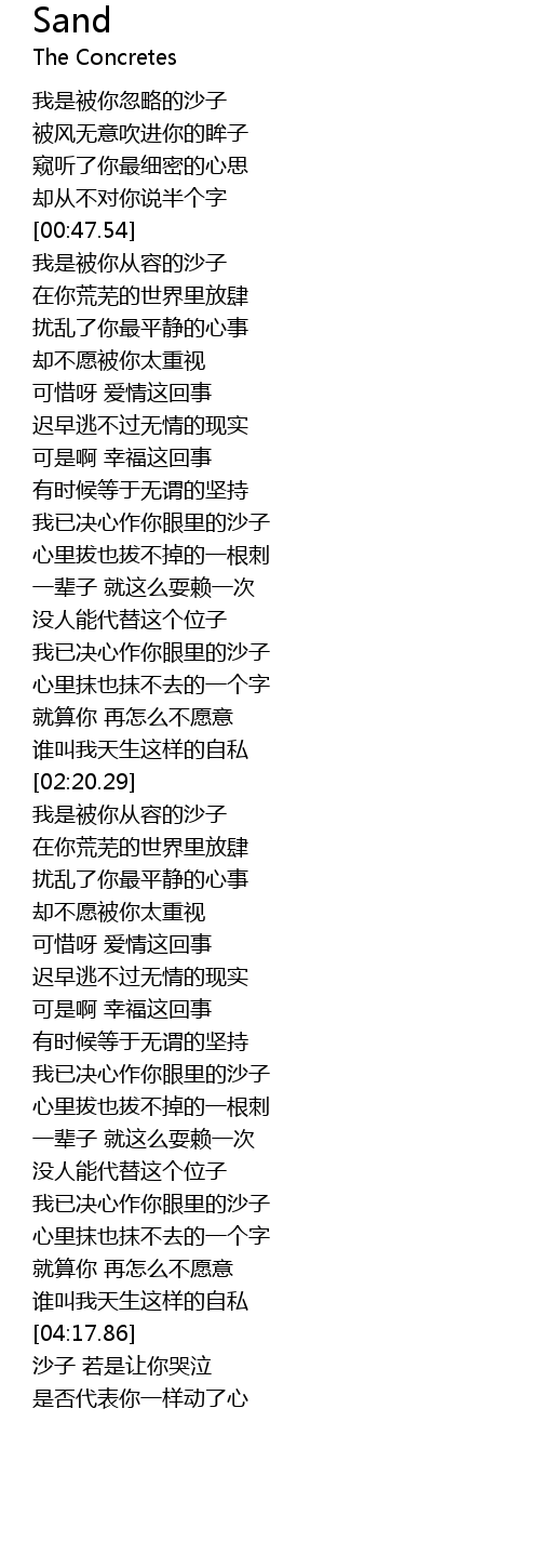 | [04:19.68] | 沙子 若是让你哭泣 |