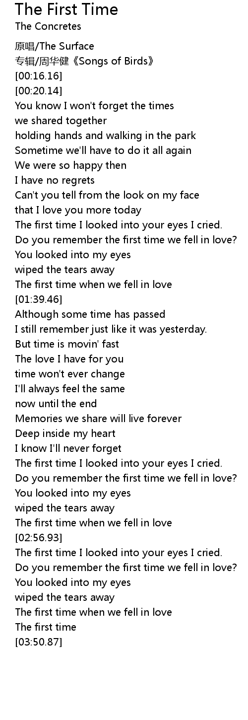| [03:17.87] | Do you remember the first time we fell in love? |