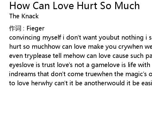 | convincing myself i don' t want youbut nothing i say can make it truehow can love hurt so muchhow can love make you crywhen we hunger for love' s touchwhy do we even tryplease tell mehow can love cause such painwhy do tears fill your eyeslove is trust love' s not a gamelove is life with a sigh ah why do i believe indreams that don' t come truewhen the magic' s overwhat can you dowhy do i have to love herwhy can' t it be anotherwould it be easier with youtell me |