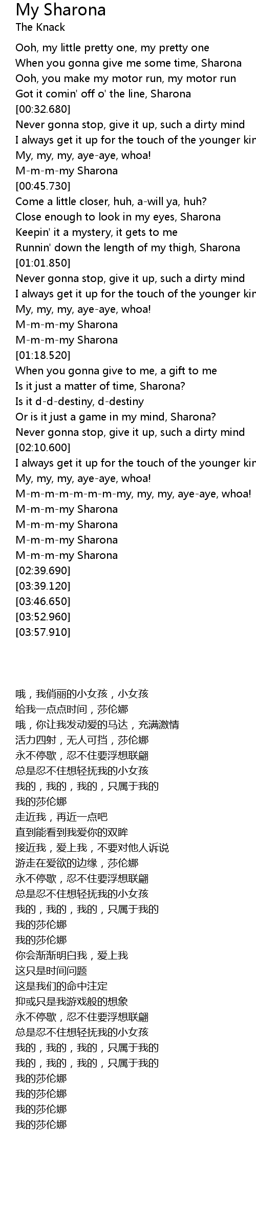 | [00:52.170] | Close enough to look in my eyes, Sharona |