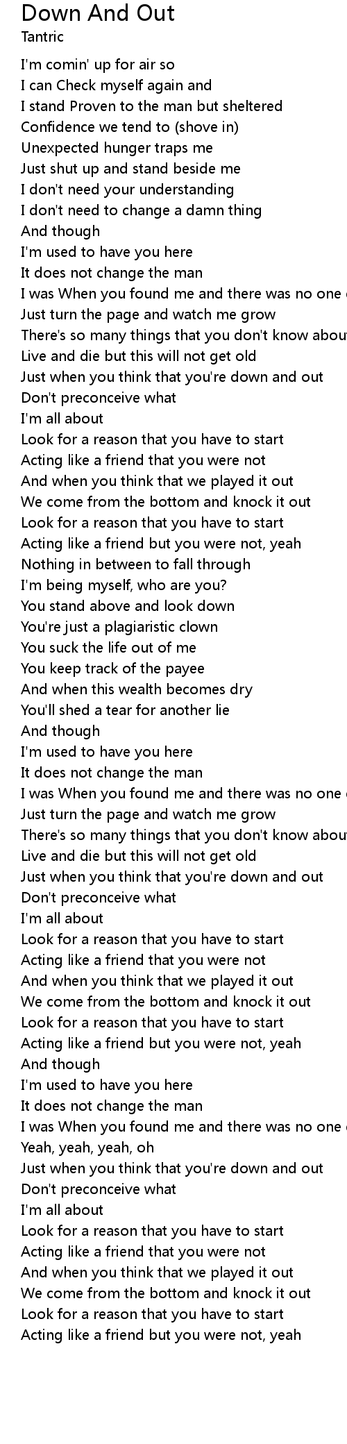 Just when you think that you're down and out |