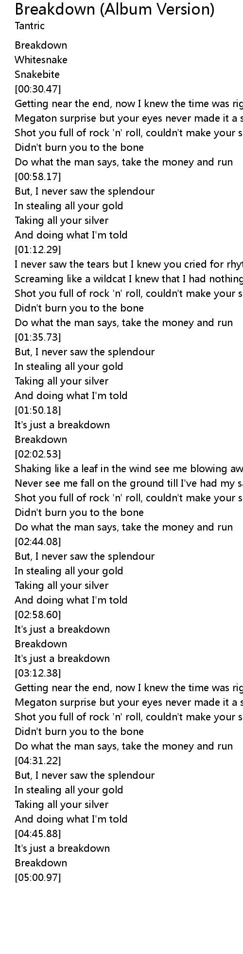 | [00:34.68] | Getting near the end, now I knew the time was right for a breakdown |