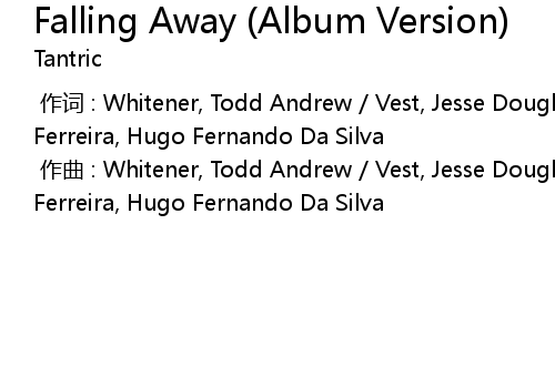 | [00:00.000] | zuò qǔ : Whitener, Todd Andrew Vest, Jesse Douglas Taul, Matt Ferreira, Hugo Fernando Da Silva |