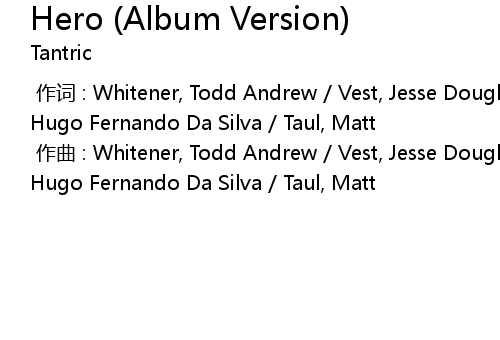 | [00:00.000] | zuo qu : Whitener, Todd Andrew Vest, Jesse Douglas Ferreira, Hugo Fernando Da Silva Taul, Matt |