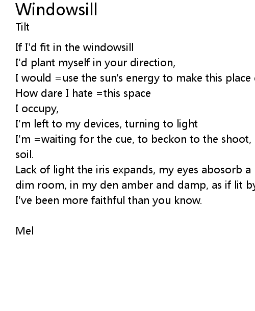 | Lack of light the iris expands, my eyes abosorb a power coming =from behind my dim room, in my den amber and damp, as if lit by faith =alone, | |