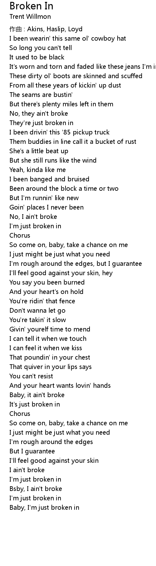| I' m just broken in | |