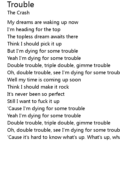 | 'Cause I'm dying for some trouble | |
