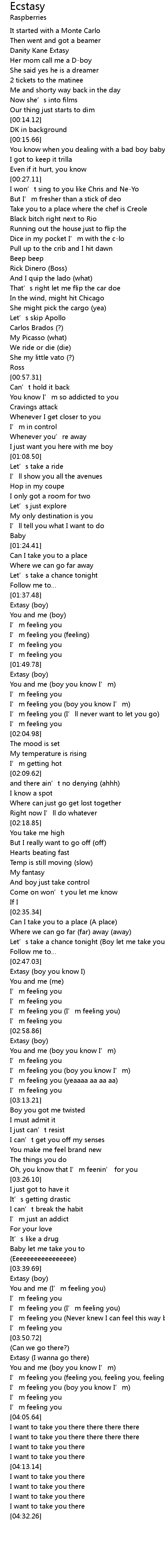 | [03:55.36] | Extasy (I wanna go there) |