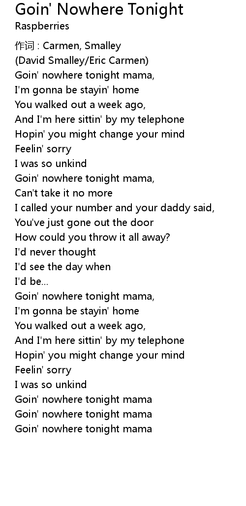 | Goin' nowhere tonight mama |
