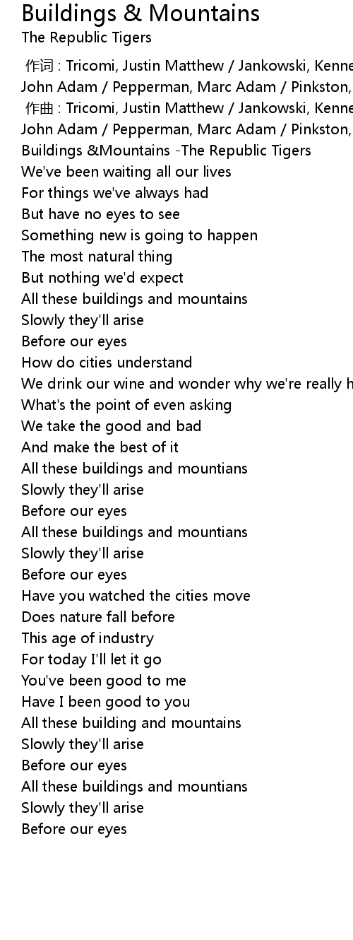 | [00:00.00] | Buildings Mountains The Republic Tigers |