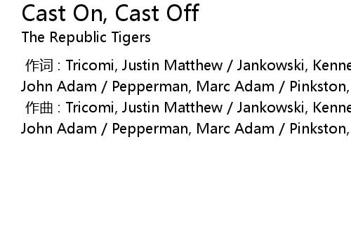 | [00:00.000] | zuo qu : Tricomi, Justin Matthew Jankowski, Kenneth Earl McGill, John Adam Pepperman, Marc Adam Pinkston, Ryan David |