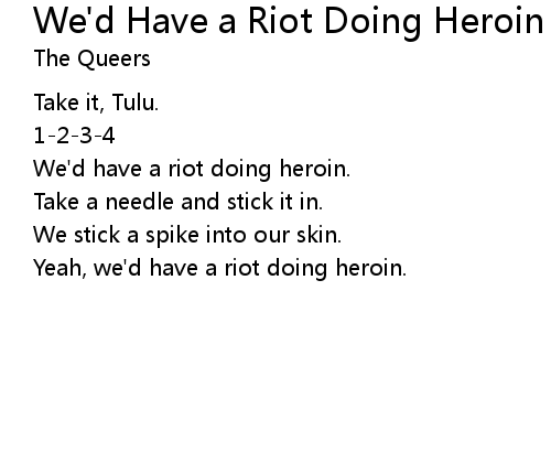 | Song | We'd Have a Riot Doing Heroin |