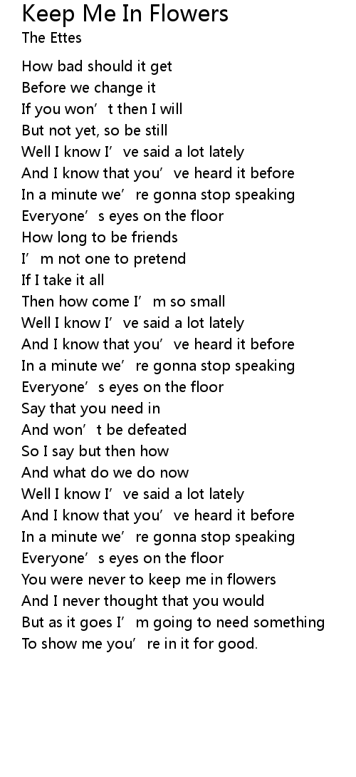 | You were never to keep me in flowers | |