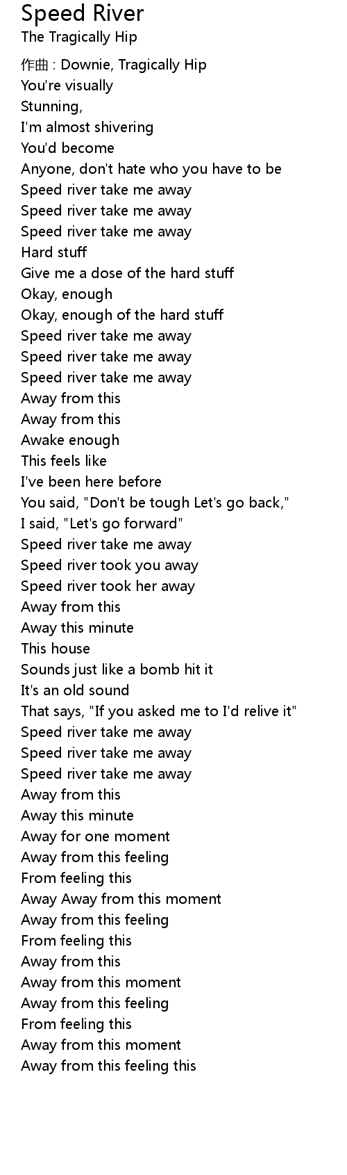 | Speed river took you away | |
