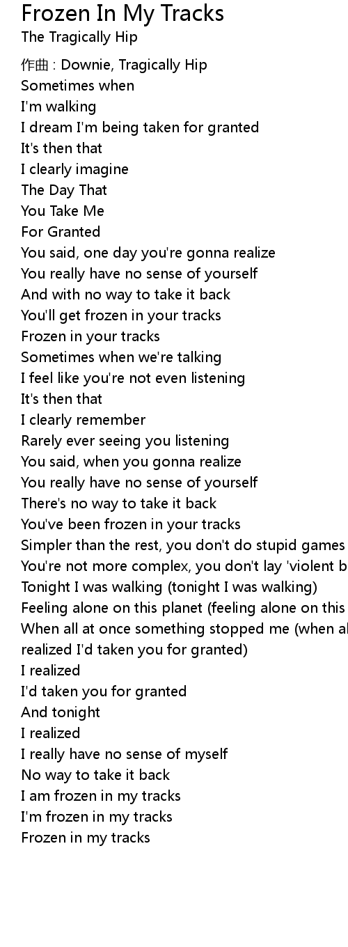 | Frozen in your tracks | |