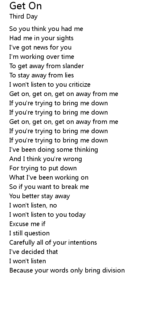 Get on, get on, get on away from me |