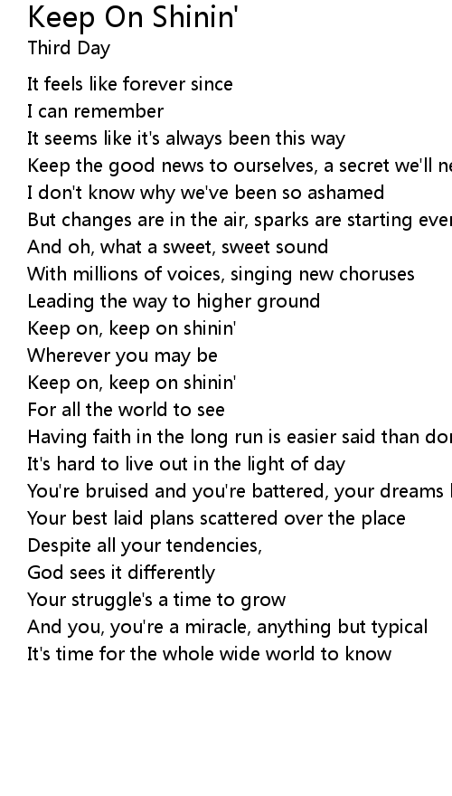Keep On Shinin' Lyrics