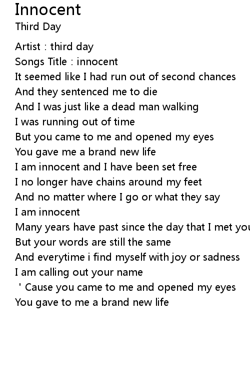 | [00:50.17] | I am innocent and I have been set free |